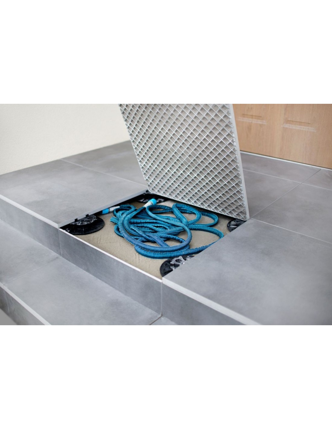 Wybrali płyty tarasowe Zoya Danzig Taupe 90x90 3 cm ze względu na ich zwiększoną wytrzymałość i mrozoodporność. Płytki ułożono na przygotowanej podsypce żwirowej, co zapewniło stabilność podłoża.